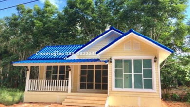 บ้านพักสไตล์คอทเทจ (Cottage) เป็นบ้านที่มี การออกแบบให้สวยงามน่ารัก พร้อมการตกแต่งแบบนุ่มนวล ทำให้บ้านประเภทนี้ กำลังเป็นที่นิยมในหมู่คนรุ่นใหม่ บ้านหลังนี้ เป็นบ้านชั้นเดียว ขนาดของบ้านก็เล็กกำลังดี สำหรับการตกแต่งผนังภายนอก เป็นผนังไม้เทียมตกแต่งด้วยโทนสีพาสเทลสีฟ้าอ่อน หลังคาบ้านเป็นหลังคาโค้ง หลังคามุงด้วยซิงเกิ้ลรูฟยางมะตอย
